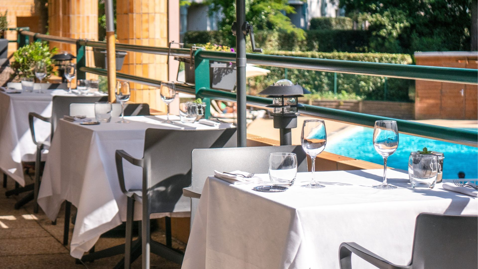 At lunch, sit down on our terrace and try, for example, a trio of mashed vegetables or beetroot mousseline in a biscuit shell with avocado cream. Then continue with a freshly seared fillet of line-caught bass on turmeric quinoa and crunchy baby vegetables, or coated Magret duck breast on a “Charlotte aux cèpes”, followed by a bowl of strawberries with basil mousse.